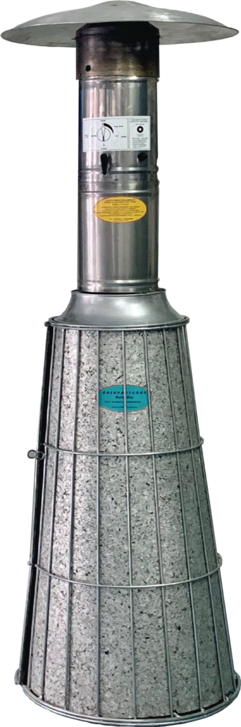 Es un sistema de válvulas, termocuplas y mallas de acero inoxidable que al encender da lugar a elevar la temperatura cubriendo de 25 a 30 metros a la redonda (DIÁMETRO) con el objetivo de mejorar ambientes fríos en agradables.
