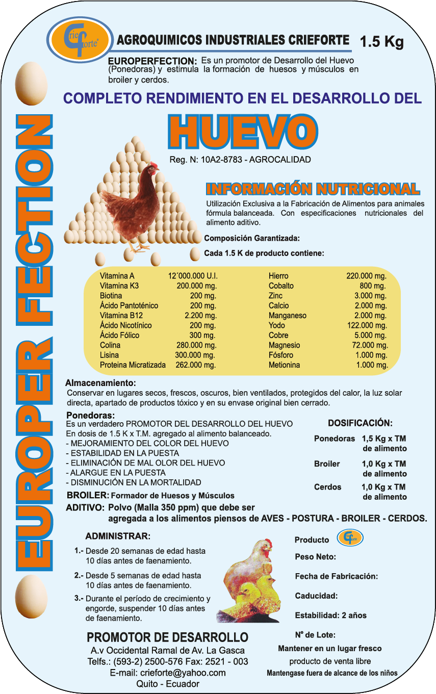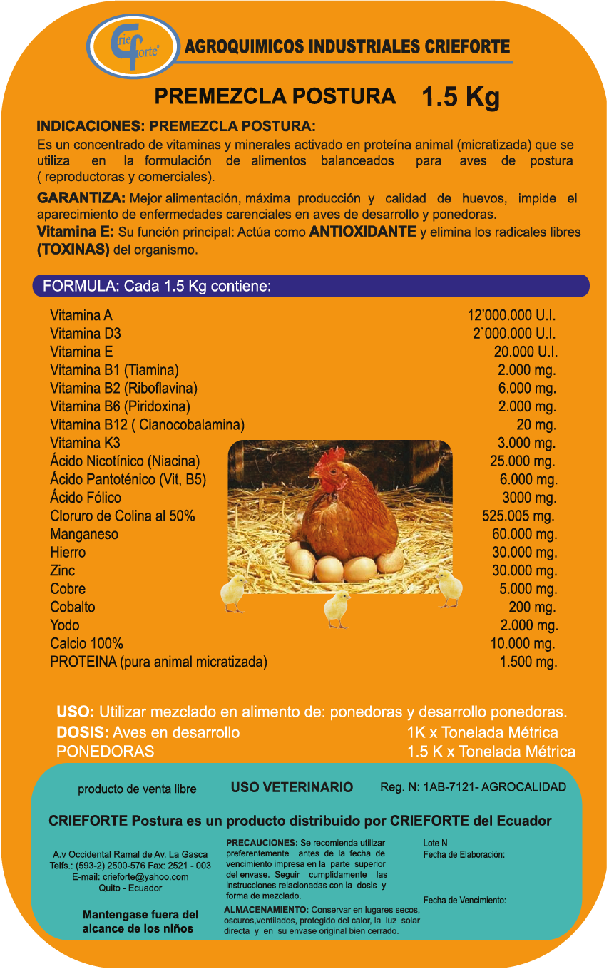 Premezcla de Postura Ver Premezcla de Cerdos Ver Premezcla Parrillero BROILER Ver Antihongos Mollejo Sanitín Ver Premezcla de EuroPerfection Ver